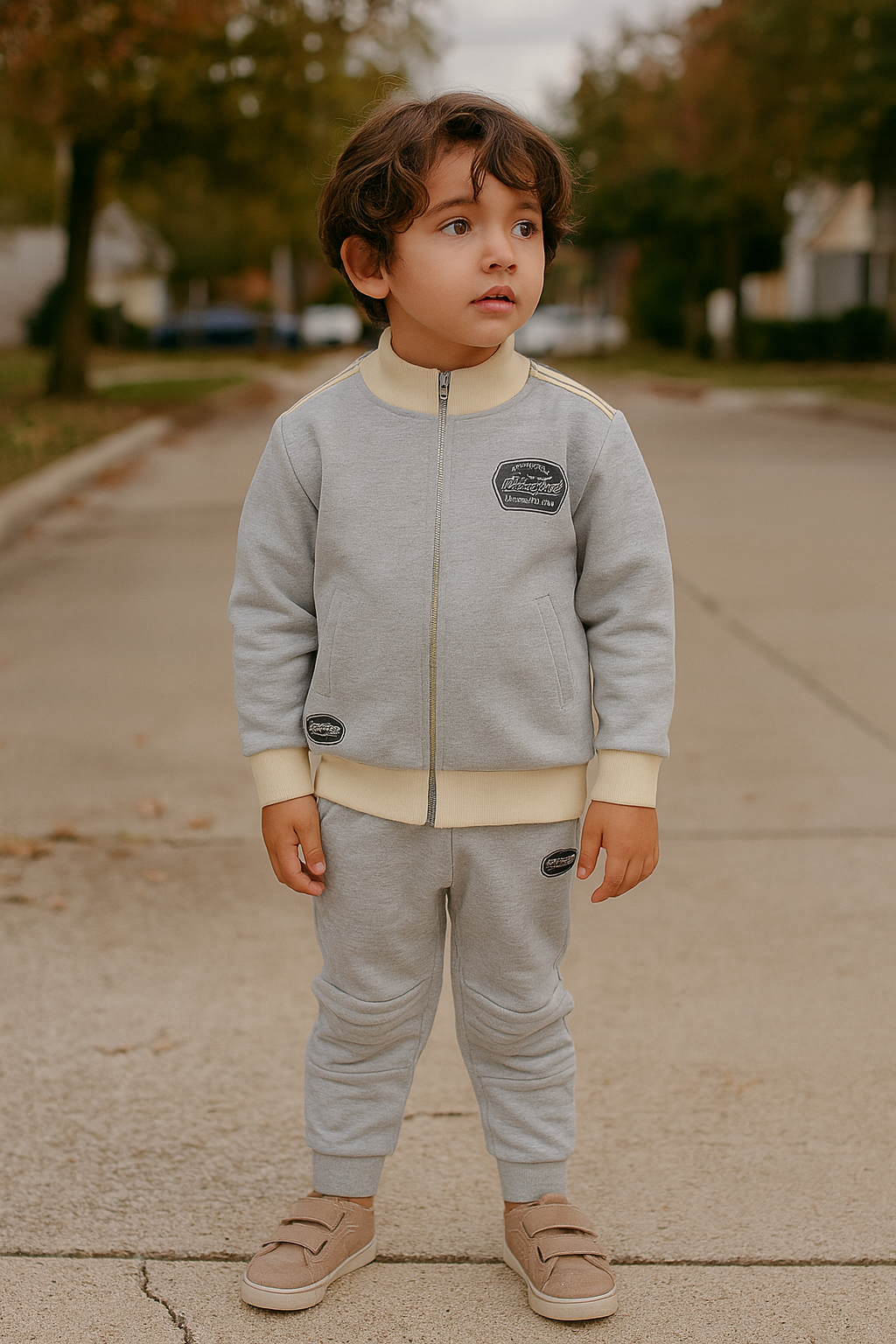 Boys’ Light Grey Zip-Up Tracksuit Set